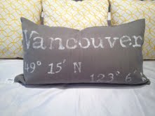 Vancouver Pillows. Proudly displaying the latitude and longitude of our beautiful city Vancouver! $145